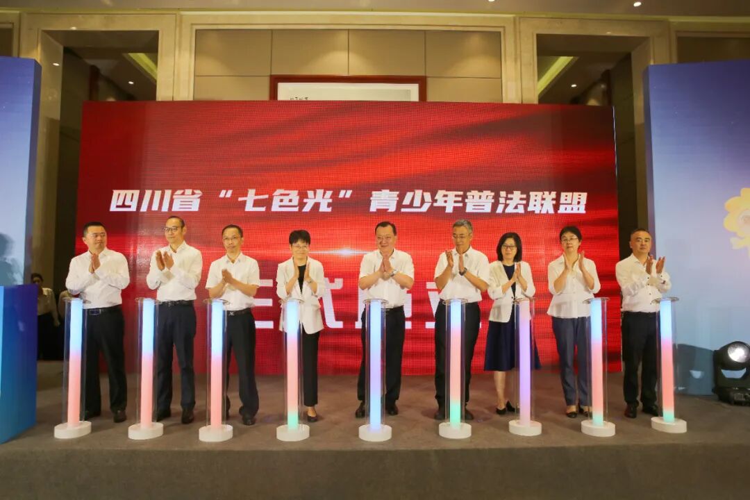 活动现场,司法厅和省委宣传部、省委社会工作部、省委政法委、省法院、省检察院、教育厅、团省委、省妇联等8个部门相关负责人共同点亮七色光柱,正式启动运行四川省“七色光”青少年普法联盟。